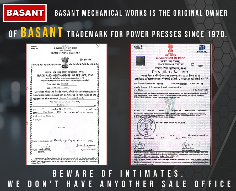 “BASANT Mechanical Works” is One of the oldest & Preeminent Manufacturer & Exporters of Mechanical Power Press, High Speed Power Presses in India.